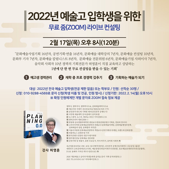 2022³â ¿¹¼ú°í ÀÔÇлýÀ» À§ÇÑ ¹«·á ÁÜ(ZOOM) ¶óÀ̺ê ÄÁ¼³ÆÃ