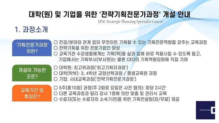 ´ëÇÐ ¶Ç´Â ±â¾÷ ³» Àü·«±âȹÀü¹®°¡°úÁ¤ °³¼³ ¾È³»