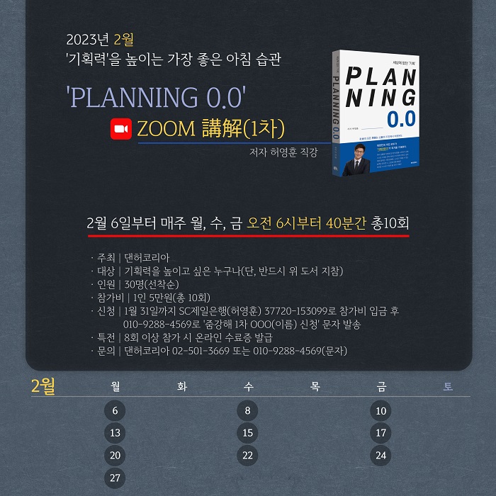 Á¦¸ñ 2023 'PLANNING 0.0' ÁÜ °­ÇØ(1Â÷) Âü°¡ ¾È³» µî·ÏÀÏ 23-01-14 00:56